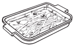 Before Flatware Presoak & Destainer helps loosen food soils from stainless flatware, plastic, glass and other non silver